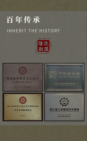 沈广隆剑铺自1885年传承至今已延续六代传人,其中第四代传人沈新培被授予“中国工艺美术大师”,中国非物质文化遗产龙泉宝剑锻制技艺代表性传承人。第五代传人、现任掌门沈州被评为“高级工艺美术师”“行业带头人”称号。